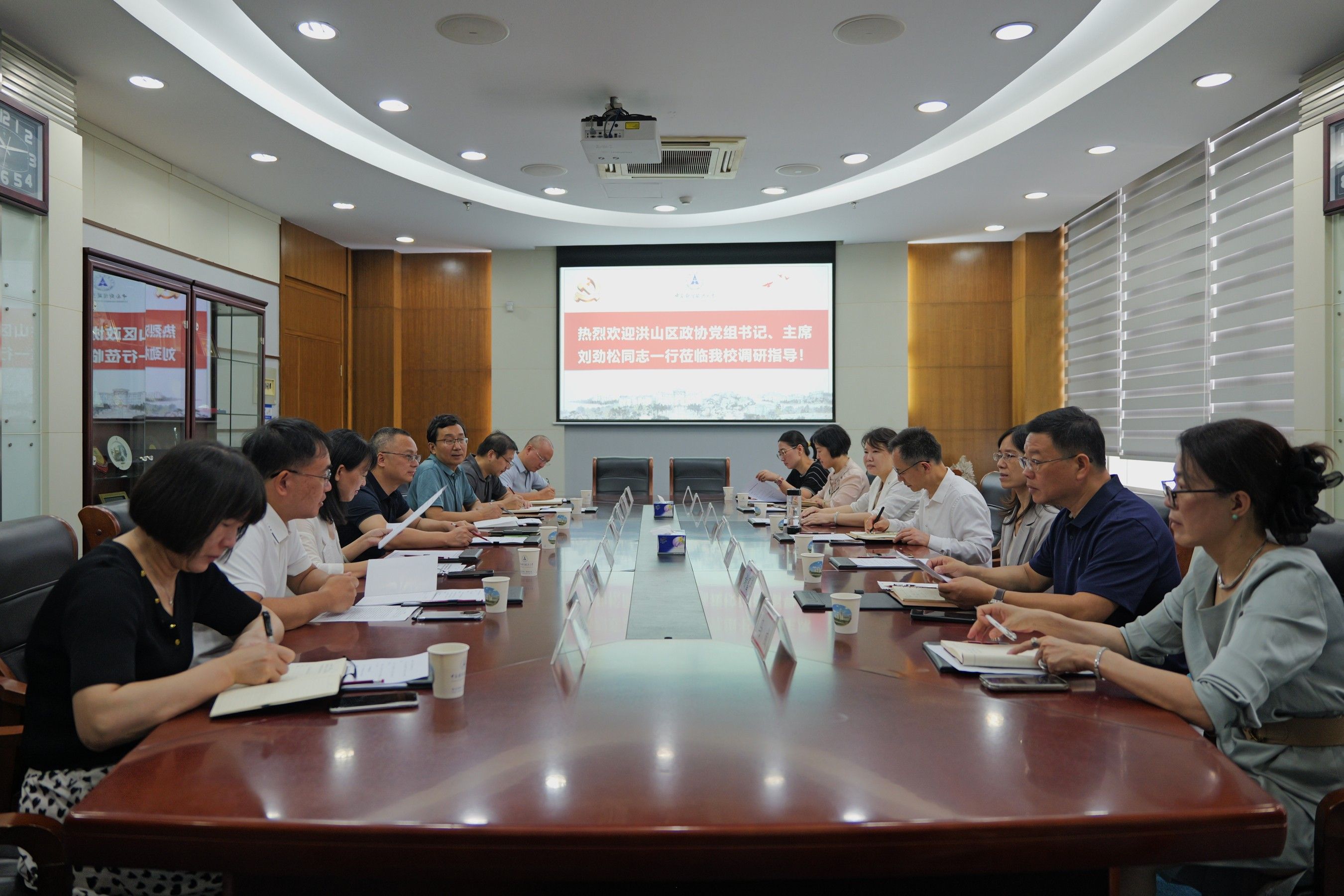 陈狮对刘劲松主席一行来访调研和洪山区长期以来对学校工作的支持表示感谢。他介绍了学校支持党外知识分子参政议政、双岗建功的相关政策,肯定了颜岩教授的履职成效。他表示,希望区政协为我校党外代表人士提供更多机会和更大平台,为洪山区经济社会高质量发展贡献更大力量。