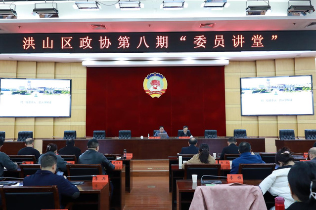 11月19日下午,洪山区政协委员、校民盟副主委颜岩教授在区政协第八期“委员讲堂”作学习贯彻党的二十届四中全会精神专题辅导报告。
