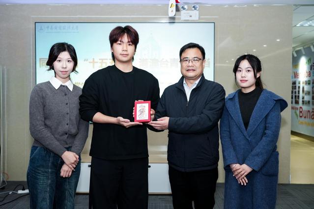活动最后,侯振发、徐涤宇与港澳台学生代表共同印制活动纪念章,并一同切分寓意美好的新年蛋糕,祝愿同学们在新的一年与学校、国家发展同频共振,共创未来。