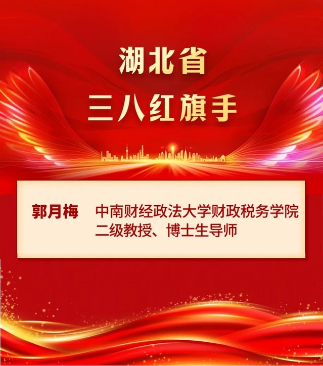 近日,我校无党派人士财政税务学院郭月梅教授凭借在治学育才、履职担当、社会服务等领域的突出贡献成功入选2024-2025年度“湖北省三八红旗手”表彰名单。